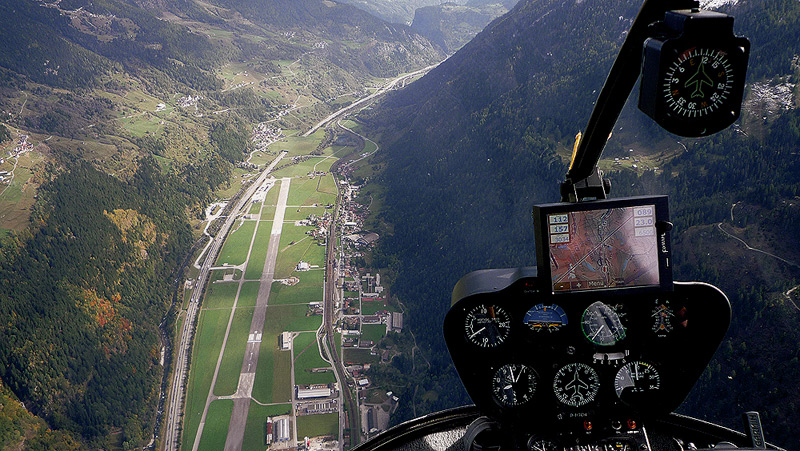 Südlich des Gotthardpasses wird das sich südwärts erstreckende Tal über die Ortschaft Bellinzona bis hin nach Locarno (LSZL) zur Navigation genutzt.